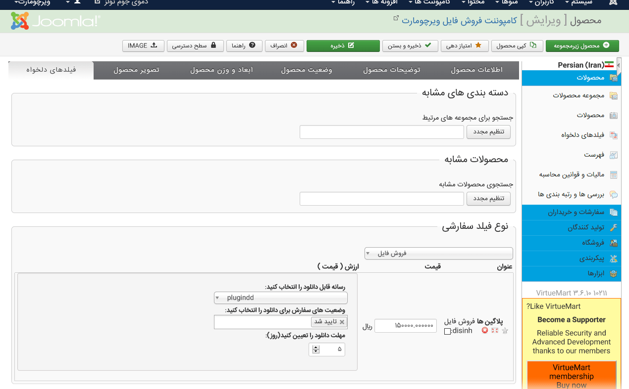افزونه فروش فایل در ویرچومارت (فارسی) VM Downloadable Goods Component for Virtuemart
