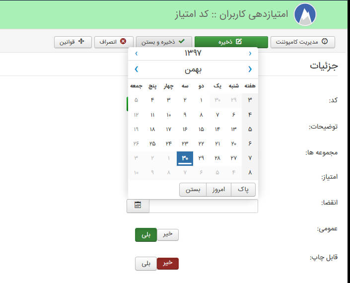 14. امکان افزایش کد ها بصورت مناسبتی (به عنوان مثال برای تولد کاربر امتیاز در نظر بگیرید)