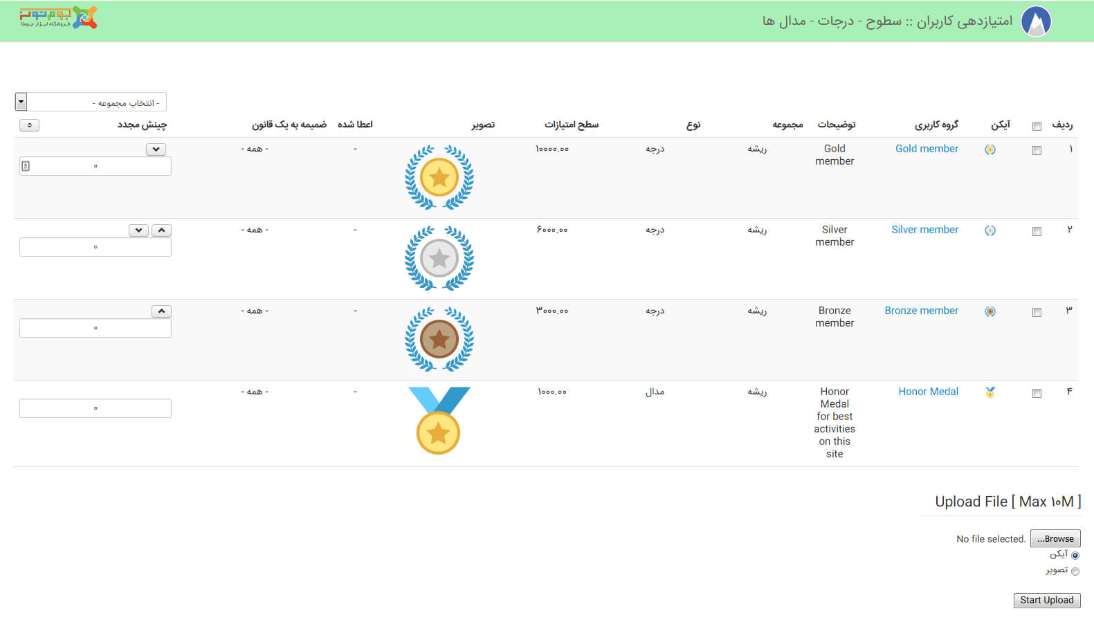 17. امکان اختصاص مدال به کاربران و تعیین امتیاز برای دریافت مدال