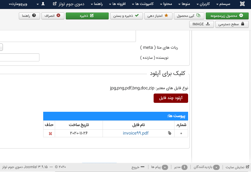 پیوست فایل به محصول ویرچومارت (فارسی) Attachment Files for Virtuemart