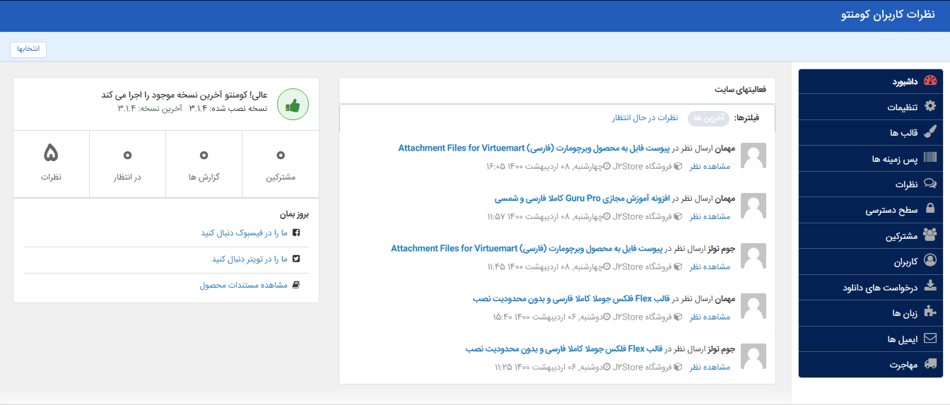 افزونه نظرات جوملا Komento کومنتو فارسی و شمسی (اختصاصی)