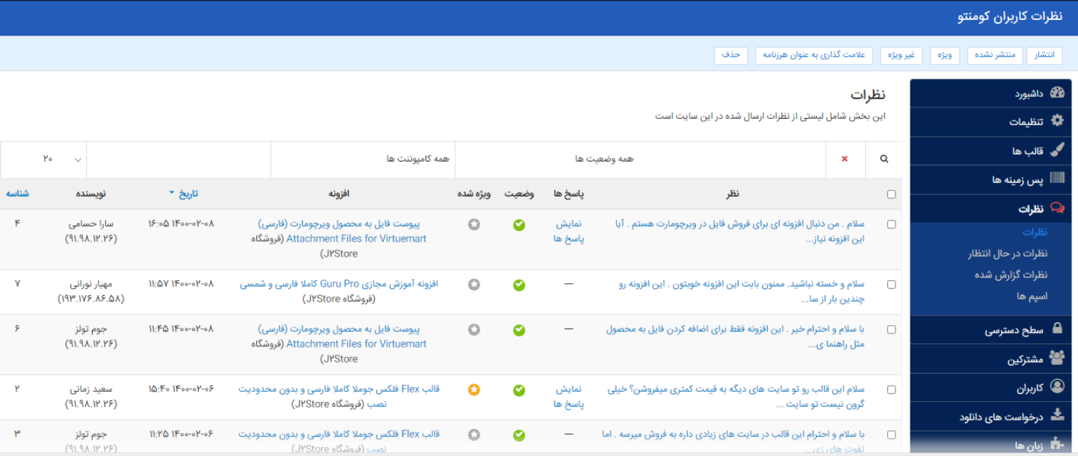 • ارسال نظر روی مقالات جوملا، کیت k2، فروشگاه ساز j2store و ...