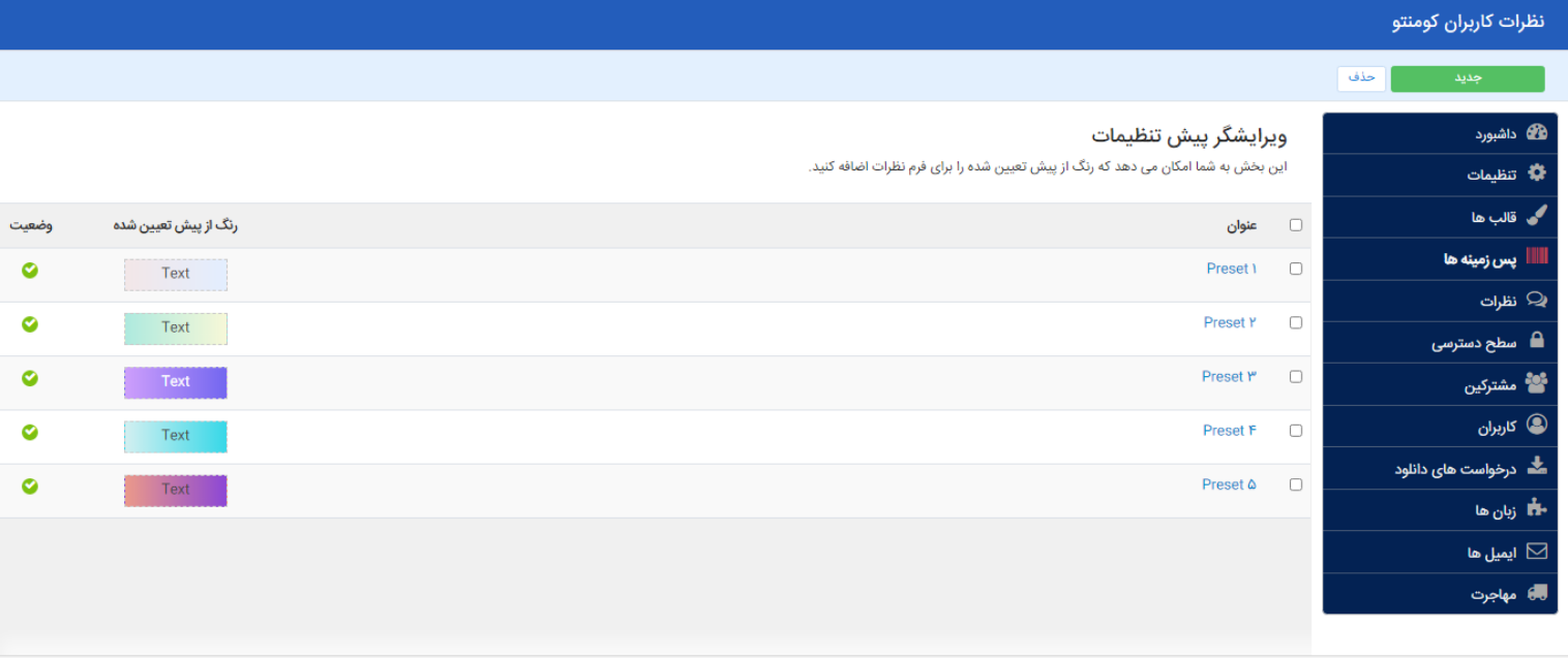 • تنظیم سطوح دسترسی  برای ارسال نظر، ویرایش یا حذف